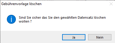 Wählen Sie [Ja] um die Gebührenvorlage aus der Liste zu entfernen und [Nein], wenn diese doch bestehen bleiben soll.
