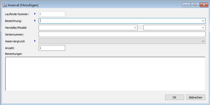 - Die Seriennummer kann als reines Freitextfeld gepflegt werden, sofern auf dem asservierten Gegenstand eine solche erkennbar ist.