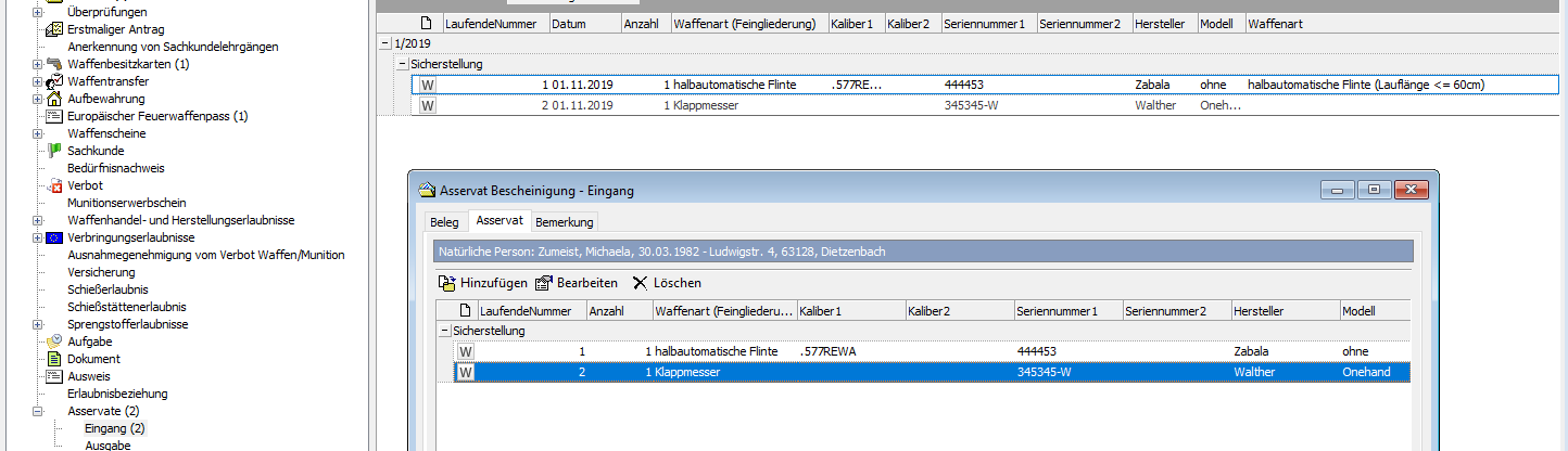 Der erfasste Gegenstand kann nun über den Personennavigator bzw. im Asservaten Eingangsbeleg eingesehen werden.