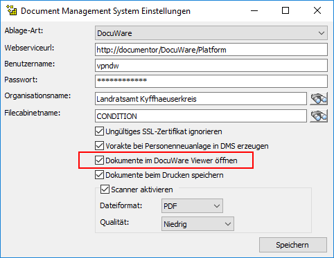 Wenn Sie den DocuWare Viewer erfolgreich aktiviert haben, werden fortan alle Dokumente beim [Öffnen]