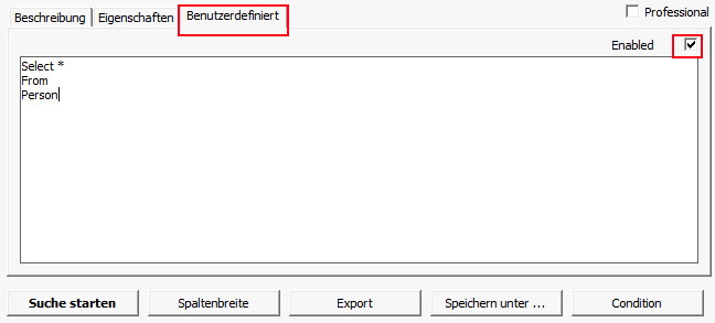 Setzen Sie dazu ein Häkchen bei "Enabled" und fügen Sie dann den Abfragetext in das darunter befindliche Memofeld ein.