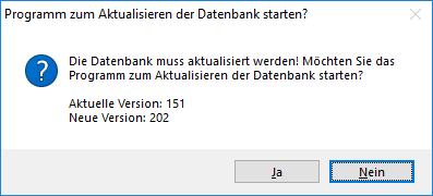 Ein Anwender, der das Programm Waffen- bzw. Jagdverwaltung nach einem Softwareupdate zuerst startet, wird durch eine Meldung auf ein notwendiges SQL Datenbankupdate hingewiesen - das Programm "dbsync.exe" öffnet sich automatisch.