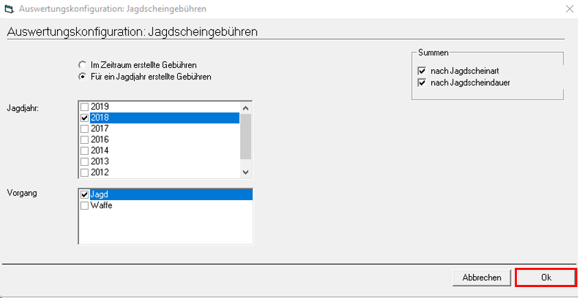 Die Suche „Jagdscheingebühren“ ist als sog. „Funktion“ hinterlegt worden und unterscheidet sich in der Verwendungsweise von den anderen Suchen.