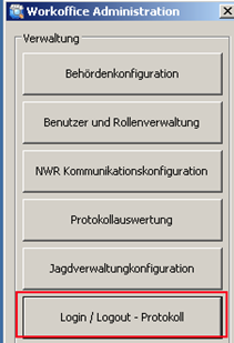 Im nachfolgenden Fenster können Sie das Login / Logout-Protokoll aufrufen, indem Sie mit der linken Maustaste auf den gleichnamigen Eintrag im Tool „WorkOffice Administration“ klicken.