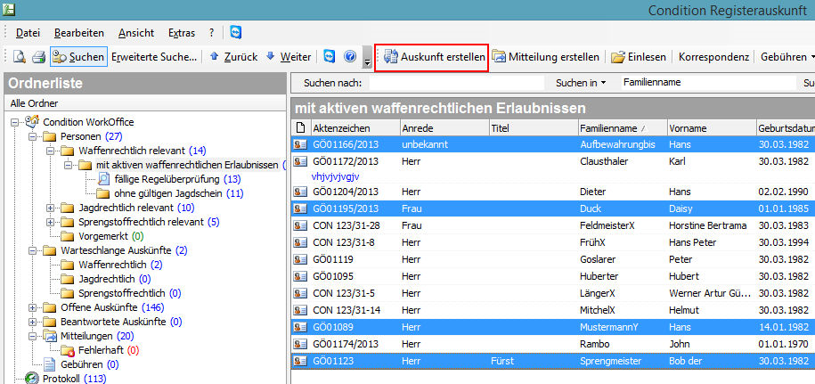 In einem Statusfenster wird Ihnen der Fortschritt des Überprüfungsvorgangs visualisiert. Nach dem Abschluss des Vorgangs werden die überprüften Personen unter dem Ordner "Offene Auskünfte" angezeigt.