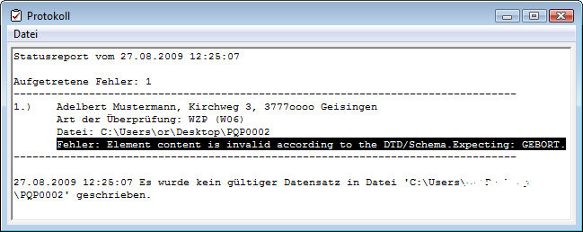 Diese Meldung sagt z.B. aus, dass das Feld „Geburtsort“ keine oder Daten in einer unzulässigen Schreibweise enthält.