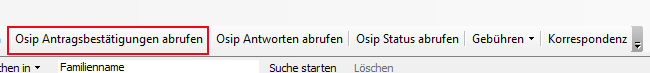 Bei Betätigung dieser Schaltfläche fordert die Registerauskunft vom zentralen OSiP Server alle noch offenen Bestätigungen in Bezug auf von die Ihnen gestellte OSiP-Anfragen (receiveAntragsBestaetigungenRequest [ xmlns=urn:osip-fb-v2 ]) und von Ihnen gelöschte Personenakten (receiveAktenLoeschenBestaetigungenRequest [ xmlns=urn:osip-fb-v2 ]).