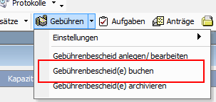 Wenn Sie die Liste der Gebührendatensätze nach dem Drucken reduzieren möchten, verwenden Sie bitte die Funktion "Gebührenbescheide buchen" aus der Condition Waffen- oder Jagdverwaltung heraus. Gebuchte und archivierte Gebührenbescheide werden in der Gebührenliste der Registerauskunft nicht mehr angezeigt.