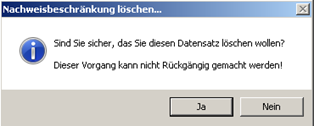 Bestätigen Sie den Löschvorgang mit der Schaltfläche [Ja]. Wenn Sie die Aktion verwerfen und zur Registerkarte „Beschränkungen“ zurückkehren möchten, klicken Sie auf den Button [Nein].