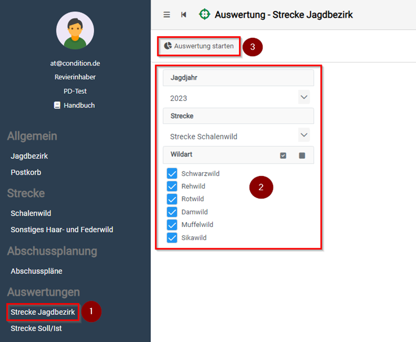 Im Ergebnis erhalten Sie die aktuellen Abschuss-, Fallwild-, Verkehrs- und Gesamtzahlen.