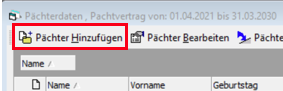 Um einen Pächter hinzuzufügen, klicken Sie auf den gleichlautenden Button im oberen Bereich der Maske.