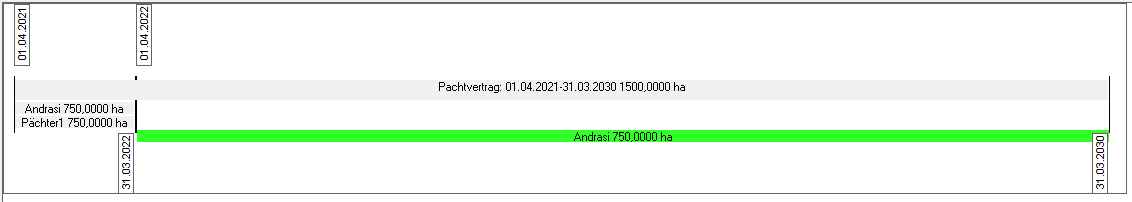 In unserem Beispeil wurde die Gültigkeit der Person "Pächter1" automatisch auf den 31.03.2022 begrenzt. Für die Person "Andrasi" wurde ein neuer Gültigkeitszeitraum nach dem 31.03.2022 erzeugt.