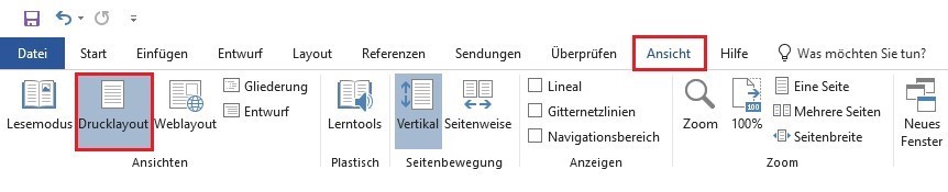 Die Wordeinstellung auf das "Drucklayout" ändern.