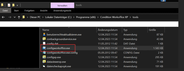 Alternativ finden Sie das Admintool im Installationsverzeichnis von WorkOffice im Unterordner „Tools“, z. B. unter:
