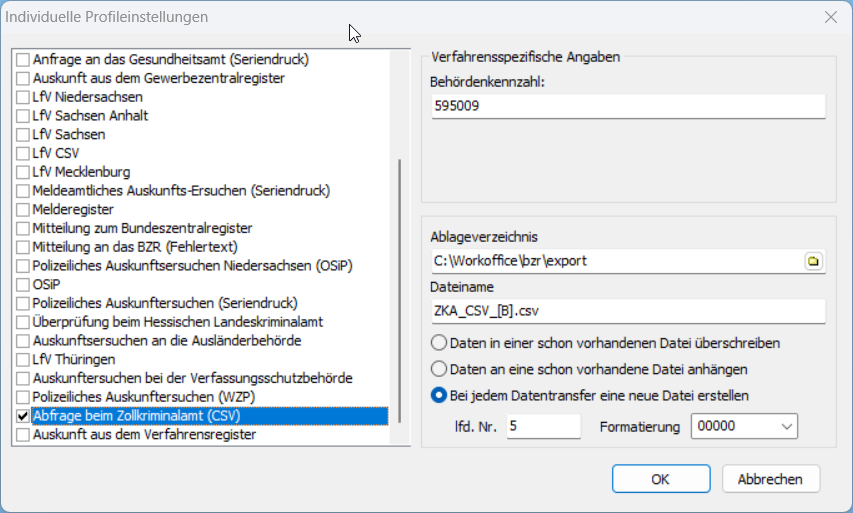 Wiederholen Sie die Schritte auch für das Profil "Abfrage beim Zollkriminalamt".