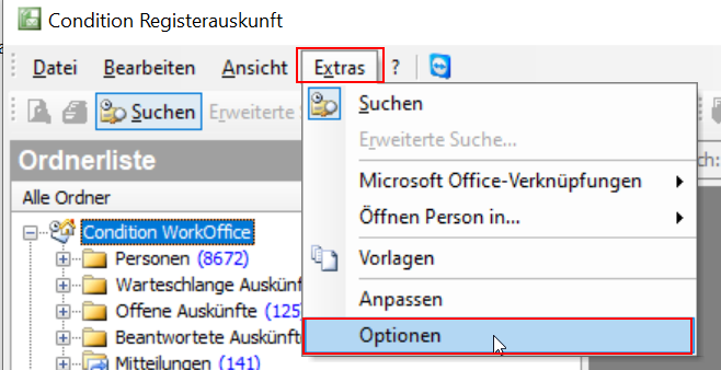 Melden Sie sich in der Condition Registerauskunft als Administrator an.