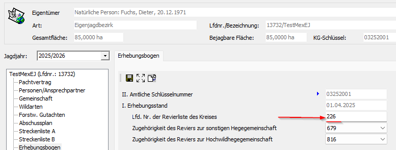 - Das Programm sagt Ihnen nun, ob in irgendeinem Jagdbezirk Erhebungsbogen oder in der Hegegemeinschaft die Laufende Nummer fehlt, falls ja, müssen Sie die entsprechende Nummer nachtragen über die Jagdverwaltung.