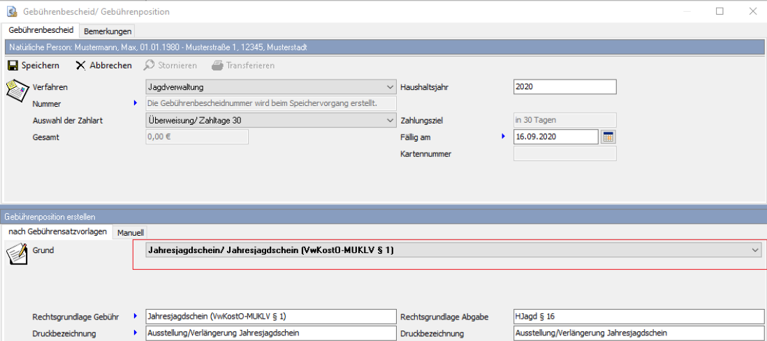• Beim Löschen von mit einem Jagdschein verknüpften Gebührenposition wird nun eine entsprechende Hinweismeldung angezeigt.