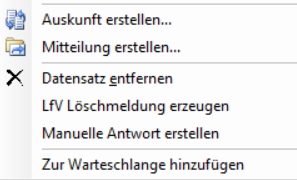 Für offene, beantwortete und archivierte Datensätze kann nun eine Löschmeldung aus dem Untermenü, welches über die rechte Maustaste erreichbar ist, erzeugt werden. Die Meldungen können genutzt werden, sofern keine vollständige Löschung der Überprüfungsdaten im lokalen Datenbestand gewünscht ist.