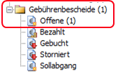 Bereits erstellte Gebühren können innerhalb des Personennavigators unter der Baumstruktur „Gebührenbescheide –> Offene“ aufgerufen werden.