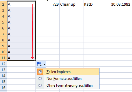 Evtl. muss aus den verfügbaren Optionen der Punkt Zellen kopieren gewählt werden.