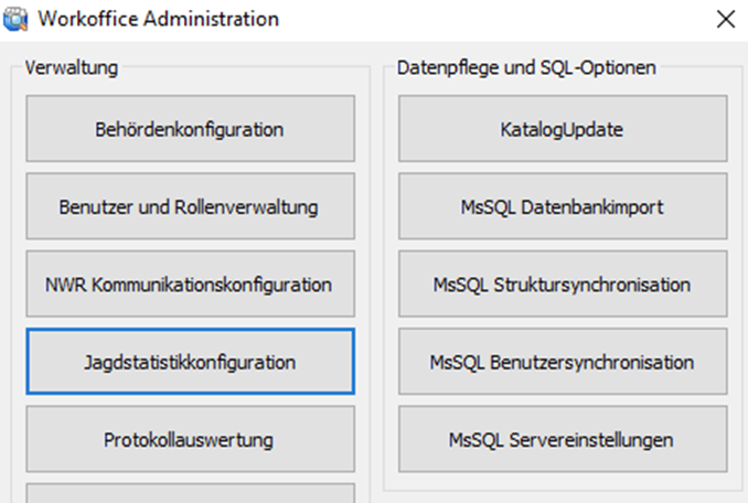 2. In der WorkOffice Administration klicken Sie auf die Schaltfläche [Jagdstatistikkonfiguration].