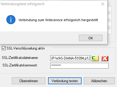 5. Geben Sie das Ihnen bekannte SSL-Zertifikatskennwort im entsprechenden Maskenfeld ein.