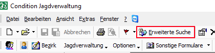 Öffnen Sie die erweiterte Suche der Condition Jagdverwaltung, indem Sie in der oberen Menüleiste auf die Schaltfläche [Erweiterte Suche] klicken.