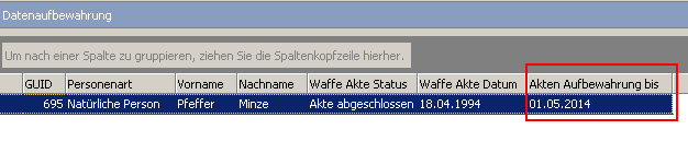 Page: Aktenarchiv - Umgang mit dem Datum "Datenaufbewahrung bis".